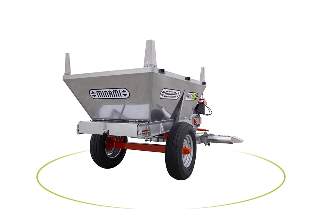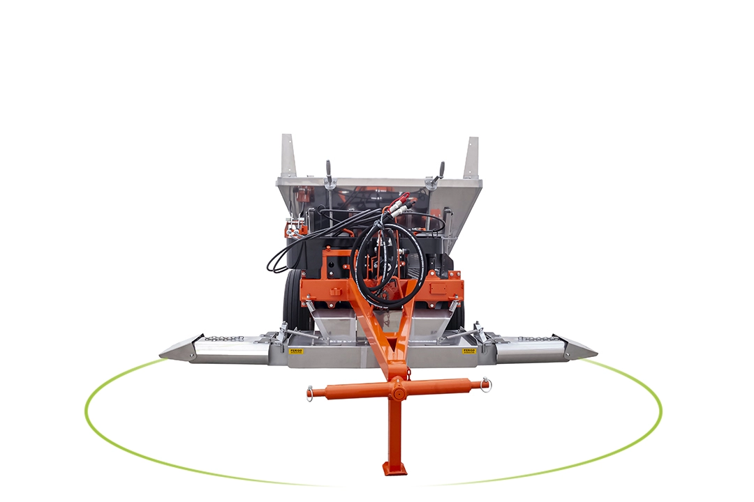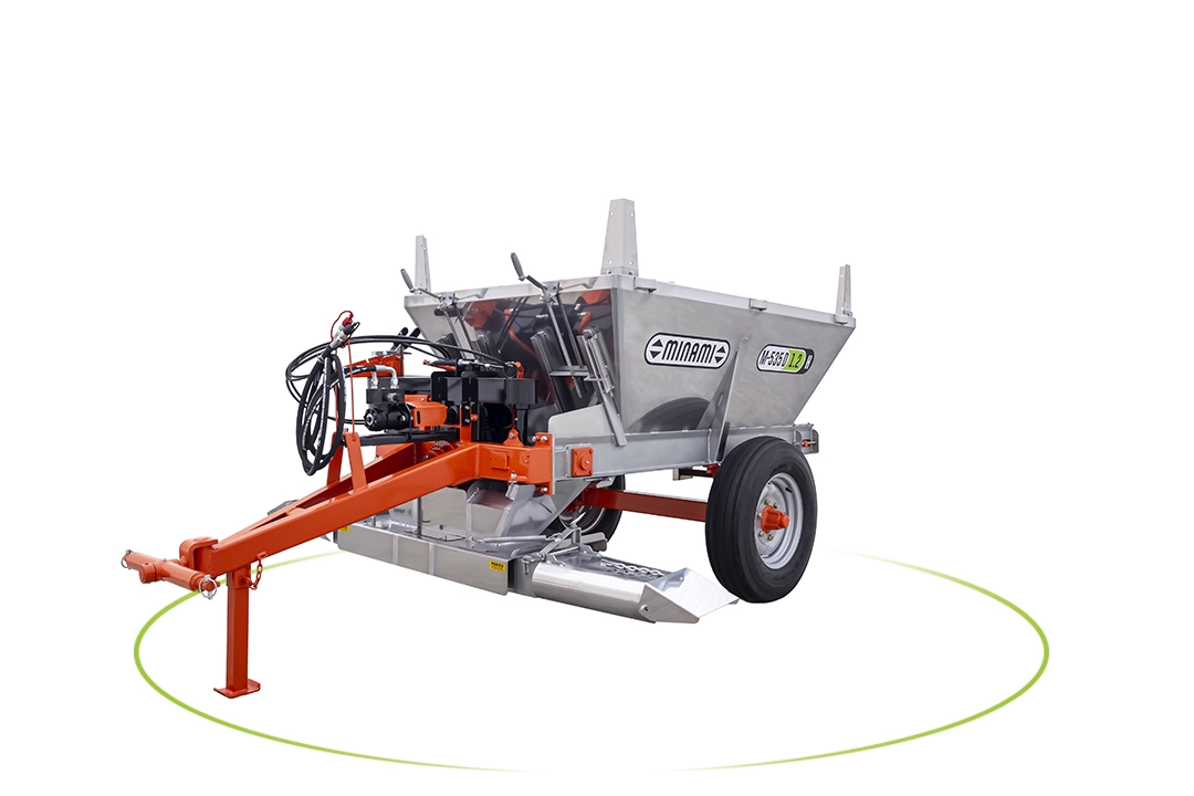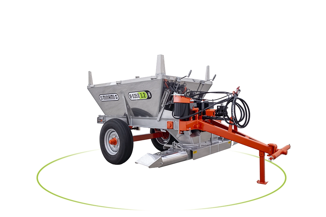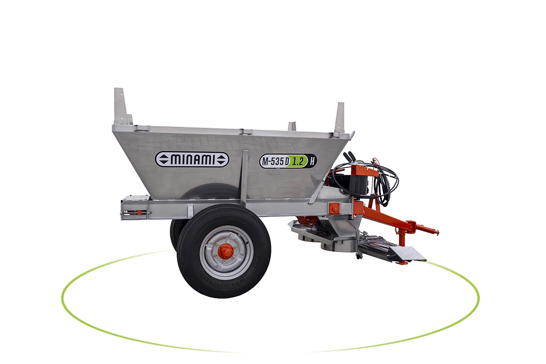 Com o sistema de descarga dianteira a M-535 D permite uma perfeita aplicação nas finalizações das linhas de plantio, ótima visualização do operador/tratorista e segurança nas manobras.