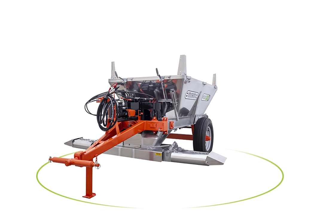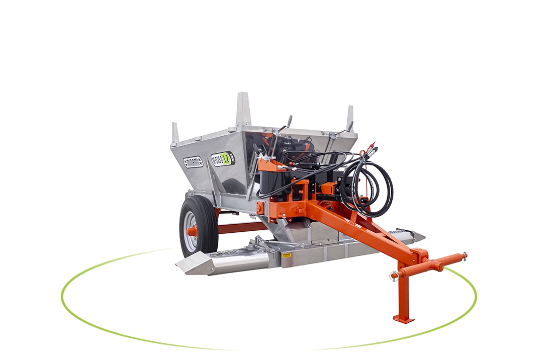 Por possuir estrutura compacta acoplável aos braços hidráulicos do trator, ela dá total liberdade na altura de descarga das bicas.